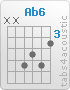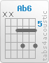 Guitar chord diagram Ab6 (xx6868) with photos and fingering positions.