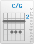 Guitar chord diagram C/G (332010) with photos and fingering positions.