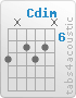 Guitar chord diagram Cdim (x x 10 11 10 11) with photos and fingering positions.