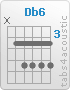 Guitar chord diagram Db6 (x46666) with photos and fingering positions.