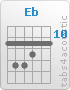 Guitar chord diagram Eb (x68886) with photos and fingering positions.