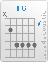 Guitar chord diagram F6 (xx3535) with photos and fingering positions.