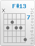 Guitar chord diagram F#13 (x 9 8 9 9 11) with photos and fingering positions.