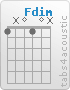 Guitar chord diagram Fdim (x8979x) with photos and fingering positions.