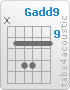 Guitar chord diagram Gadd9 (320005) with photos and fingering positions.